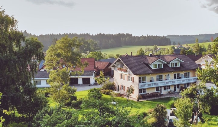 Das Vier-Sterne-Gesundheitshotel liegt idyllisch am Ortsrand von Grünenbach im Allgäu. Zum Haus gehört eine wunderbare Liegewiese, an die unmittelbar Wiesen und Wälder angrenzen, so dass Sie sich hier in ruhiger und landschaftlich wunderschöner Gegend erholen können. Außerdem können Sie vom Hotel aus direkt Wanderungen durchs Allgäu starten – beispielsweise zur Schlucht „Eistobel“, die zu jeder Jahreszeit ein atemberaubendes Naturerlebnis verspricht. Im Nachbarort können Sie sich auf einem leicht wanderbaren Skulpturenweg von Kunst und Natur inspirieren lassen.